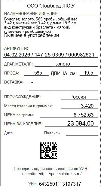 Цена за грамм общего веса: 6752.63Цена за грамм чистого веса: 6752.63Организация: ООО "Ломбард ЛЮЭ"Металл: золотоПроба: 585Артикул: 04.02.2026 / 147-25-0309 / 000982621Базовая единица: шт