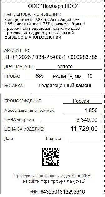Цена за грамм общего веса: 6340Цена за грамм чистого веса: 6752.45Организация: ООО "Ломбард ЛЮЭ"Металл: золотоПроба: 585Артикул: 11.02.2026 / 034-25-0331 / 000983785Базовая единица: шт
