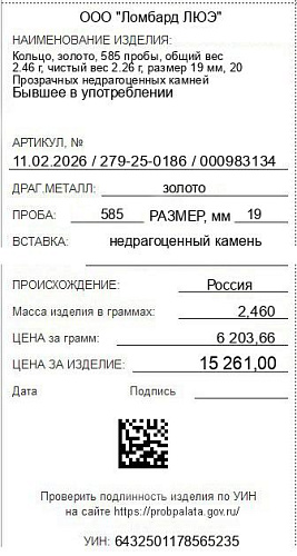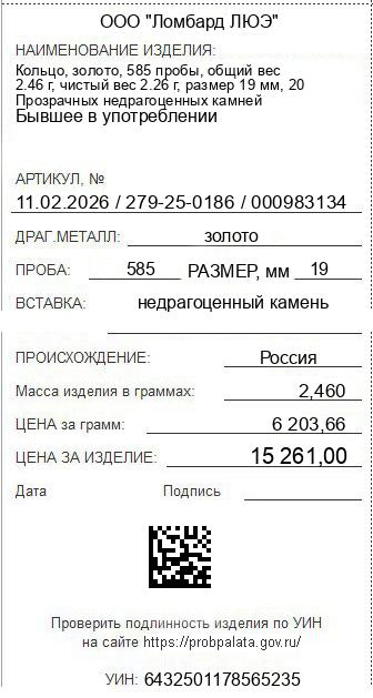Цена за грамм общего веса: 6203.66Цена за грамм чистого веса: 6752.65Организация: ООО "Ломбард ЛЮЭ"Металл: золотоПроба: 585Артикул: 11.02.2026 / 279-25-0186 / 000983134Базовая единица: шт