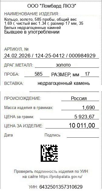 Цена за грамм общего веса: 5923.67Цена за грамм чистого веса: 7470.9Организация: ООО "Ломбард ЛЮЭ"Металл: золотоПроба: 585Артикул: 24.02.2026 / 124-25-0412 / 000984929Базовая единица: шт