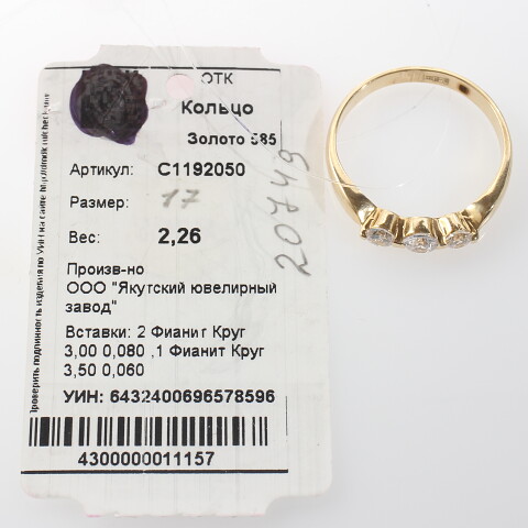 УИН: 6432500091337393Описание вставок: 1 Прозрачный недрагоценный камень,2 Прозрачных недрагоценных камняОбщий вес: 2.26Чистый вес: 2.105Вес вставок: 0.155Высота, мм: 3Высота шинки, мм: 1