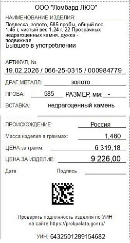 Цена за грамм общего веса: 6319.18Цена за грамм чистого веса: 7440.32Организация: ООО "Ломбард ЛЮЭ"Металл: золотоПроба: 585Артикул: 19.02.2026 / 066-25-0315 / 000984779Базовая единица: шт