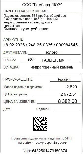 Цена за грамм общего веса: 2972.34Цена за грамм чистого веса: 7998.09Организация: ООО "Ломбард ЛЮЭ"Металл: золотоПроба: 585Артикул: 18.02.2026 / 248-25-0335 / 000984545Базовая единица: шт