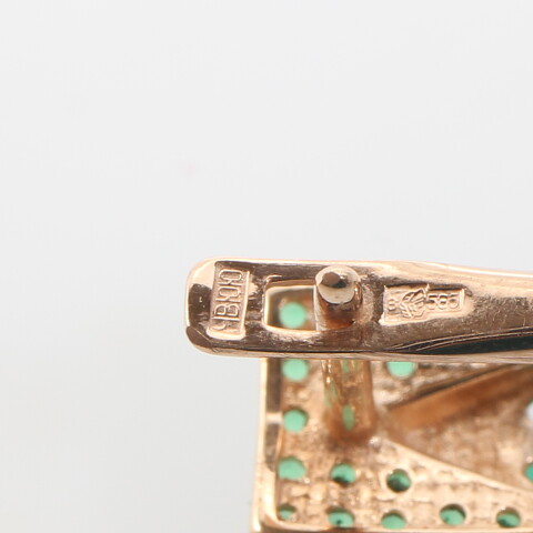 Описание: вид замка - английскийУИН: 6432500636619375Описание вставок: 17 Зеленых недрагоценных камней,1 Зеленый недрагоценный каменьОбщий вес: 1.59Чистый вес: 1.148Вес вставок: 0.442Высота, мм: 16