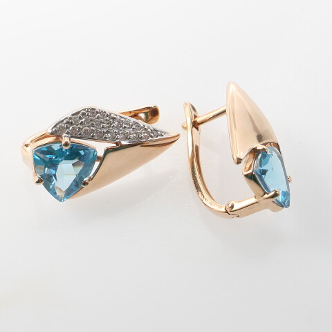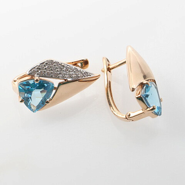 Серьга золото 585, общий вес - 2.63 г, чистый вес - 1.904 г