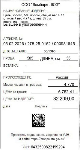 Цена за грамм общего веса: 6752.41Цена за грамм чистого веса: 6752.41Организация: ООО "Ломбард ЛЮЭ"Металл: золотоПроба: 585Артикул: 05.02.2026 / 278-25-0152 / 000981645Базовая единица: шт