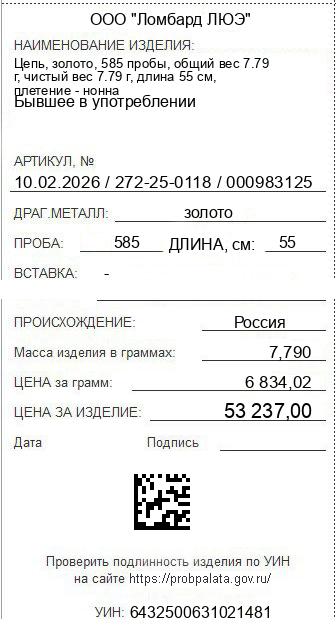 Цена за грамм общего веса: 6834.02Цена за грамм чистого веса: 6834.02Организация: ООО "Ломбард ЛЮЭ"Металл: золотоПроба: 585Артикул: 10.02.2026 / 272-25-0118 / 000983125Базовая единица: шт