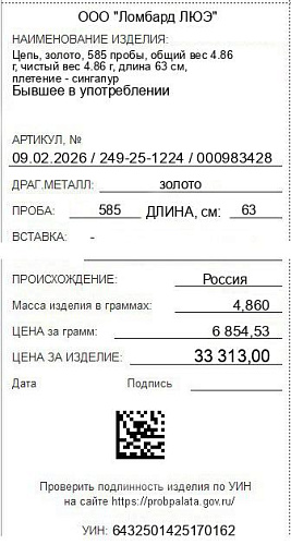 Цена за грамм общего веса: 6854.53Цена за грамм чистого веса: 6854.53Организация: ООО "Ломбард ЛЮЭ"Металл: золотоПроба: 585Артикул: 09.02.2026 / 249-25-1224 / 000983428Базовая единица: шт
