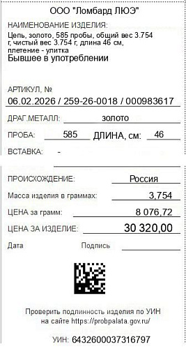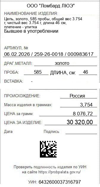 Цена за грамм общего веса: 8076.72Цена за грамм чистого веса: 8076.72Организация: ООО "Ломбард ЛЮЭ"Металл: золотоПроба: 585Артикул: 06.02.2026 / 259-26-0018 / 000983617Базовая единица: шт