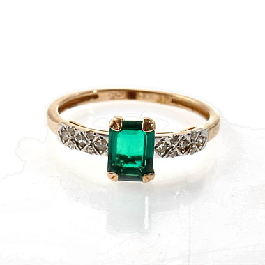 УИН: 6432501557054537Описание вставок: 1 Зеленый недрагоценный камень,14 бриллиантов Кр-17 - 0,056 кар.3/55Общий вес: 1.7Чистый вес: 1.461Вес вставок: 0.239Высота, мм: 7Высота шинки, мм: 1