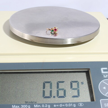 Описание: вид замка - французскийУИН: 6432600002417548Описание вставок: 1 Розовый недрагоценный камень,1 Зеленый недрагоценный каменьОбщий вес: 0.68Чистый вес: 0.572Вес вставок: 0.108Высота, мм: 15