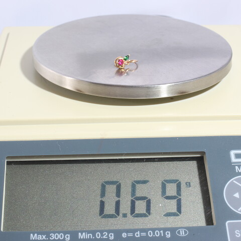 Описание: вид замка - французскийУИН: 6432600002417520Описание вставок: 1 Розовый недрагоценный камень,1 Зеленый недрагоценный каменьОбщий вес: 0.69Чистый вес: 0.582Вес вставок: 0.108Высота, мм: 15