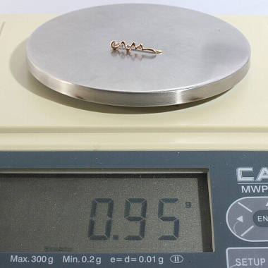 Серьга золото 585, общий вес - 0.95 г, чистый вес - 0.914 г
